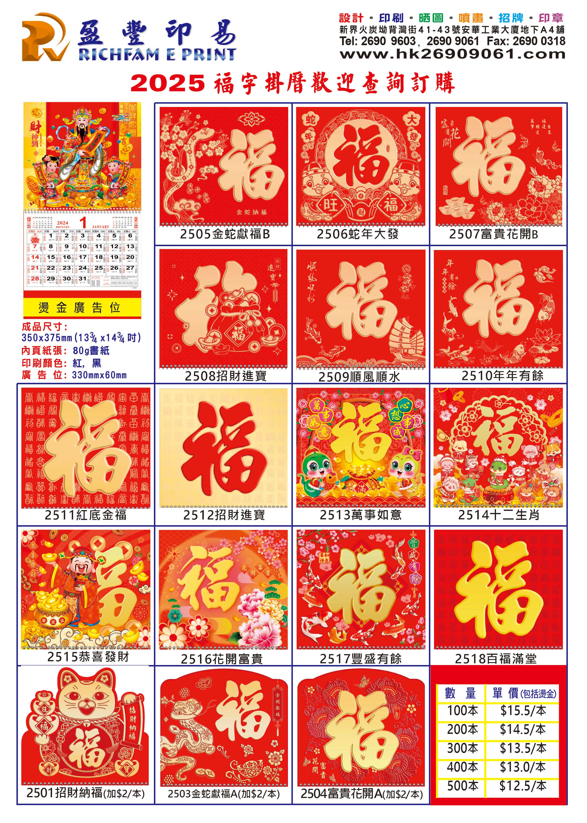 本店另設個人化座檯曆及福字曆訂購,歡迎查詢。